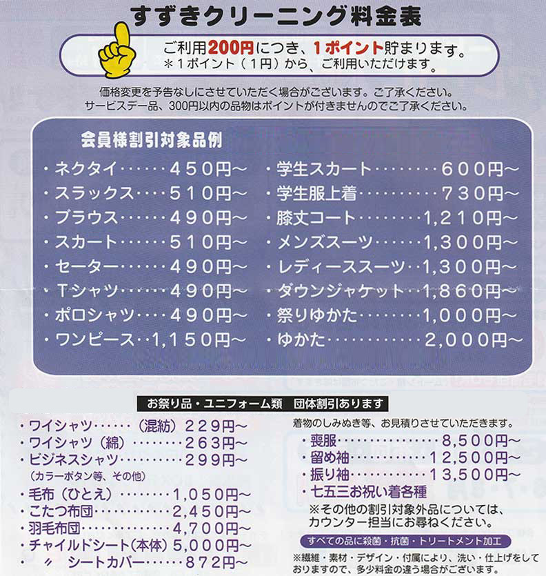クリーニング料金200円につき1ポイント付与