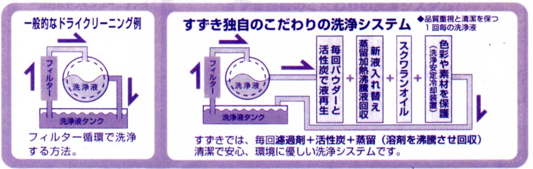 一般的なドライクリーニングとすずき独自の洗浄システムの違い