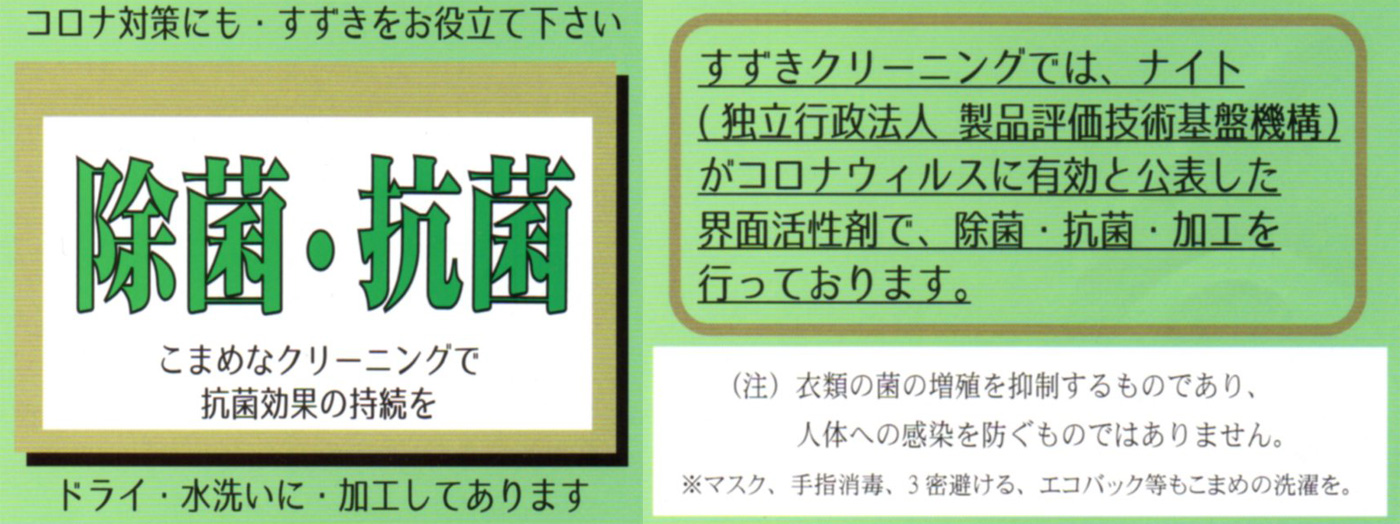 独立行政法人 製品評価技術基盤機構がウィルスに有効と公表した界面活性剤で加工を行っています。