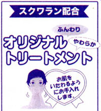 潤い、艶、保湿効果でお肌をいきいきさせる高純度スクワランオイル(深海鮫の肝油で高級化粧品に使用)を使った贅沢な加工です。