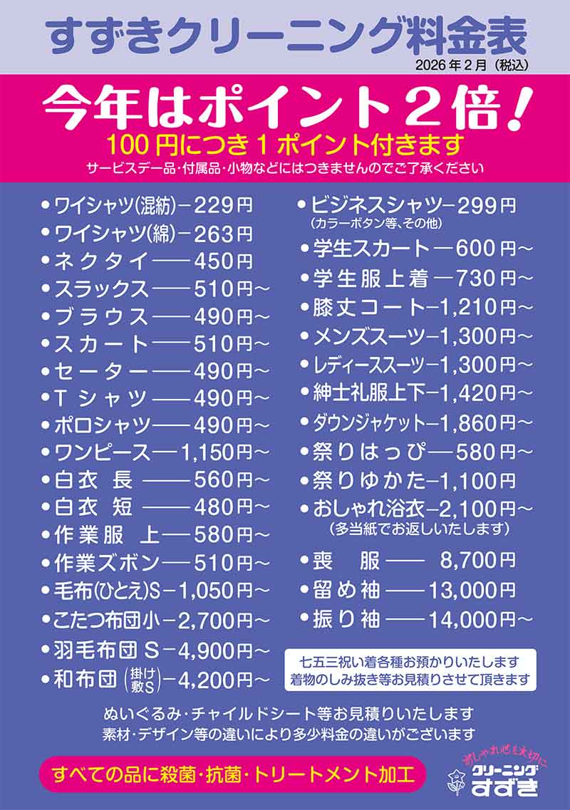 クリーニング料金200円につき1ポイント付与